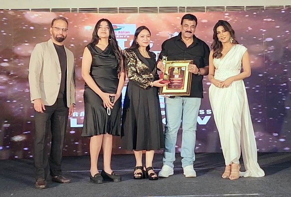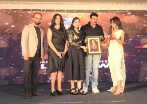 मंच पर चित्रांगदा सिंह एवं बिग एफएम के सीएफओ सुनील कुमारन द्वारा डॉक्टर संदीप को सपरिवार बिग इंपैक्ट ट्रॉफी एवं प्रमाण पत्र देकर सम्मानित किया गया।