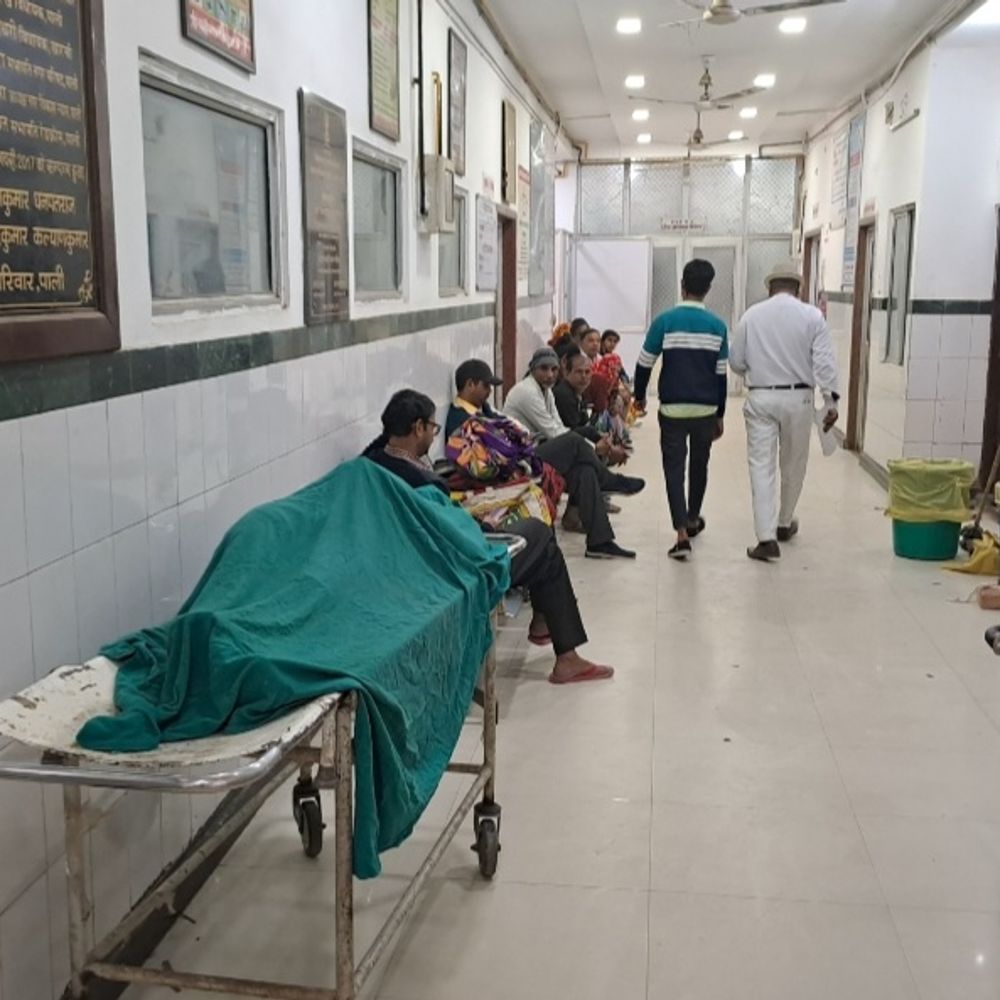 पाली के बांगड़ हॉस्पिटल के ट्रॉमा वार्ड में रखी युवक की बॉडी जिसे बाद में मोर्चरी में रखवाया गया।